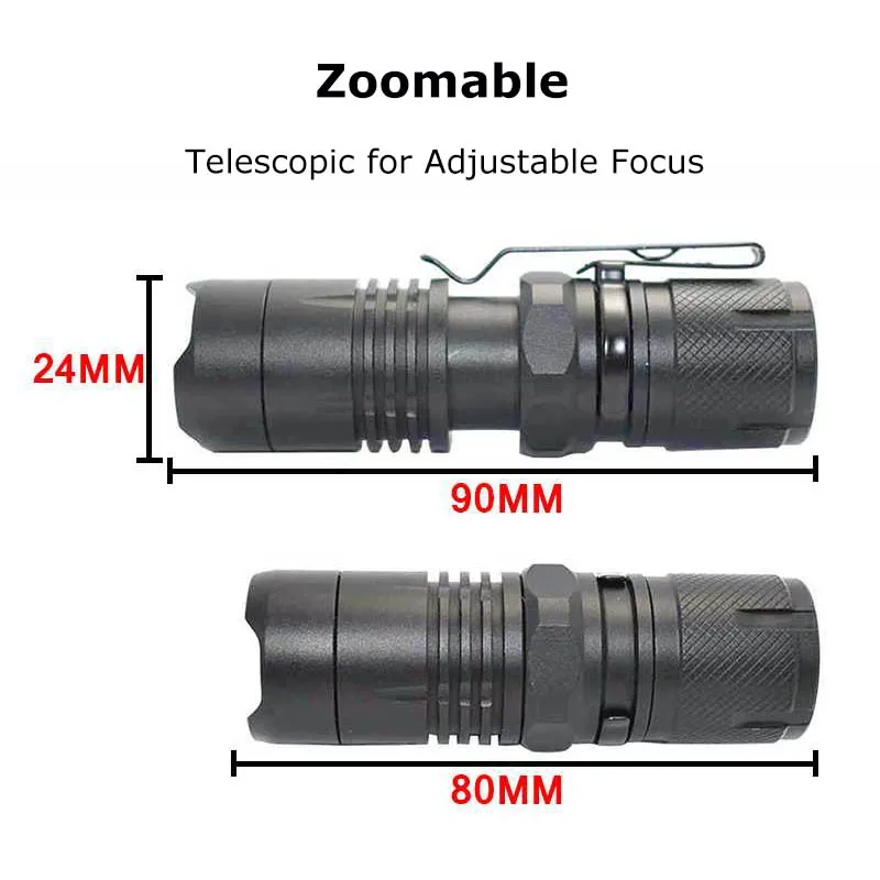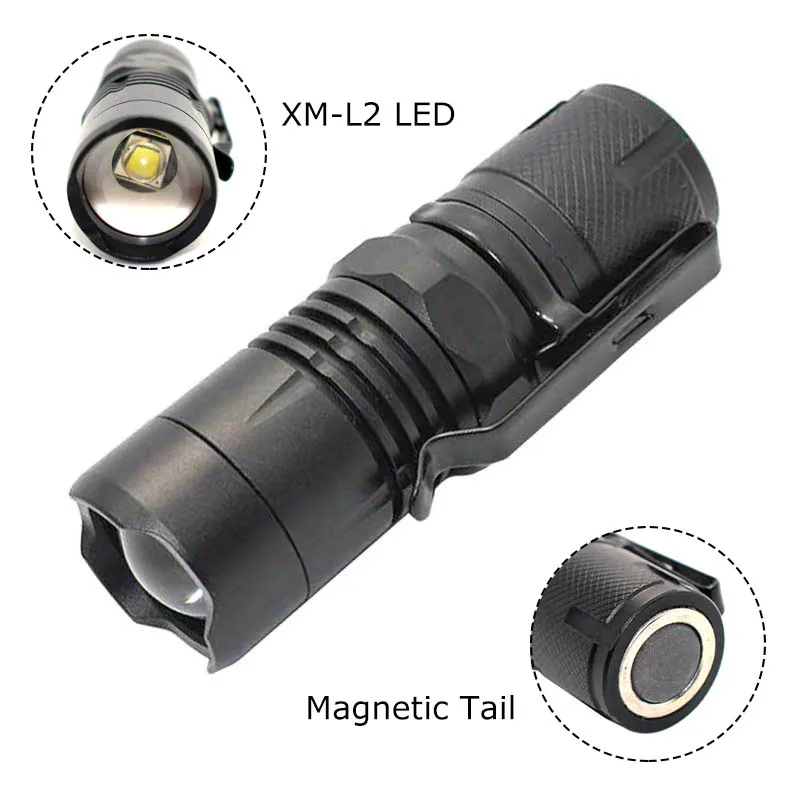 XM-L2 Mini Magnetic LED Flashlight 2000LM Adjustable Focus Zoom Torch Small Pocket Lamp 16340 Penli